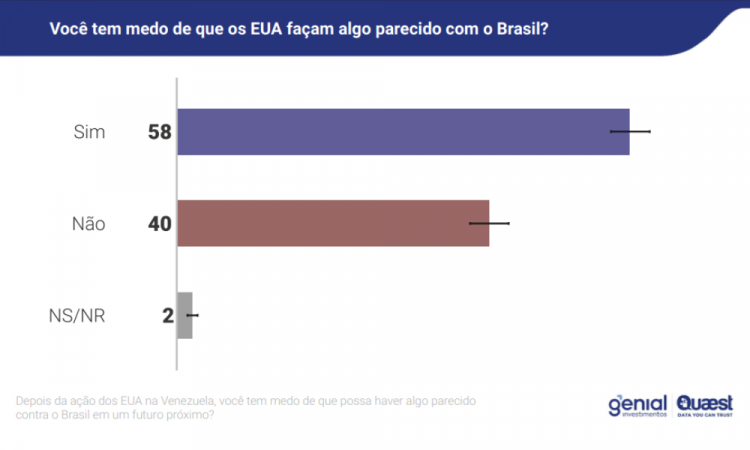 Genial/Quaest: Após a ação na Venezuela, 58% dos brasileiros temem que os EUA façam algo parecido no Brasil