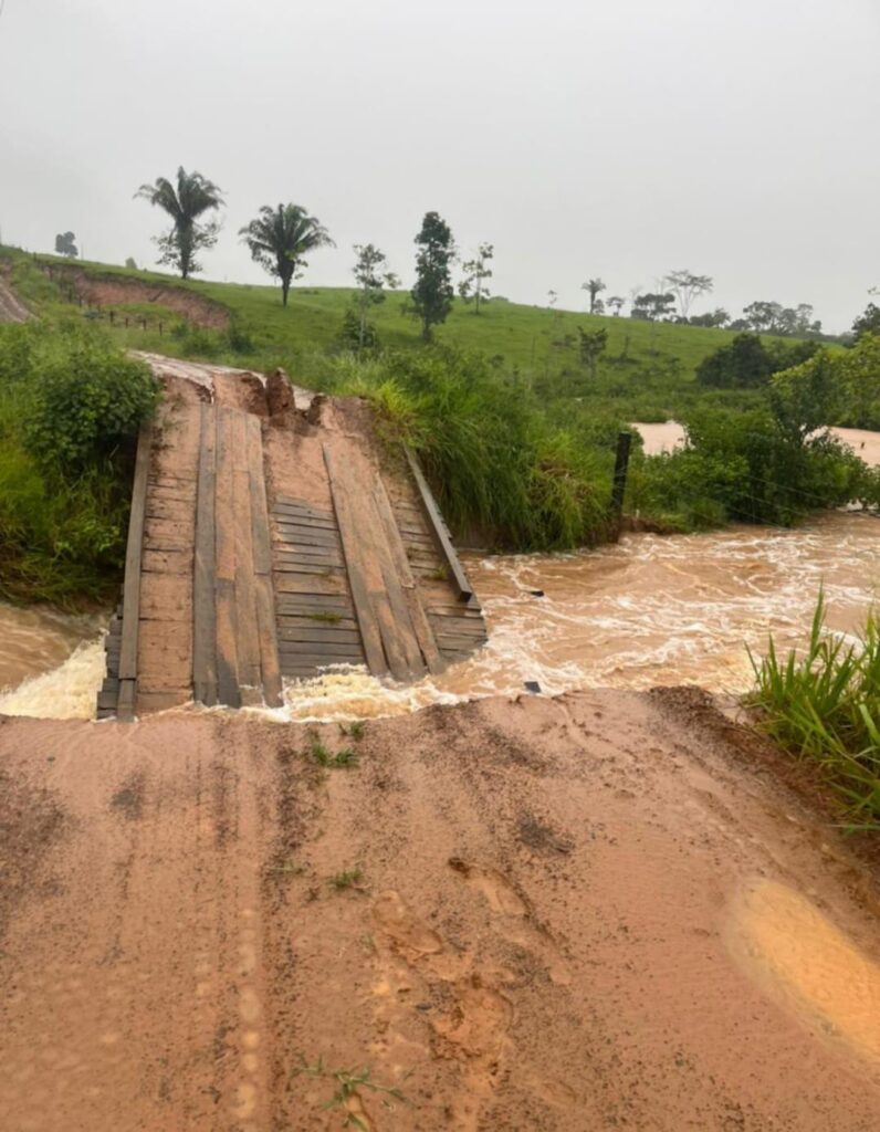 Chuvas intensas causaram alagamentos, destruíram pontes e isolaram ramais; gestão municipal trabalha para recuperar acessos e drenagem.