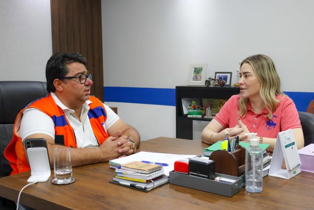 Em reunião no gabinete municipal, prefeito Carlinhos do Pelado e secretária Márdhia El-Shawwa (SEMULHER) definem prioridades para políticas de inclusão e proteção social.