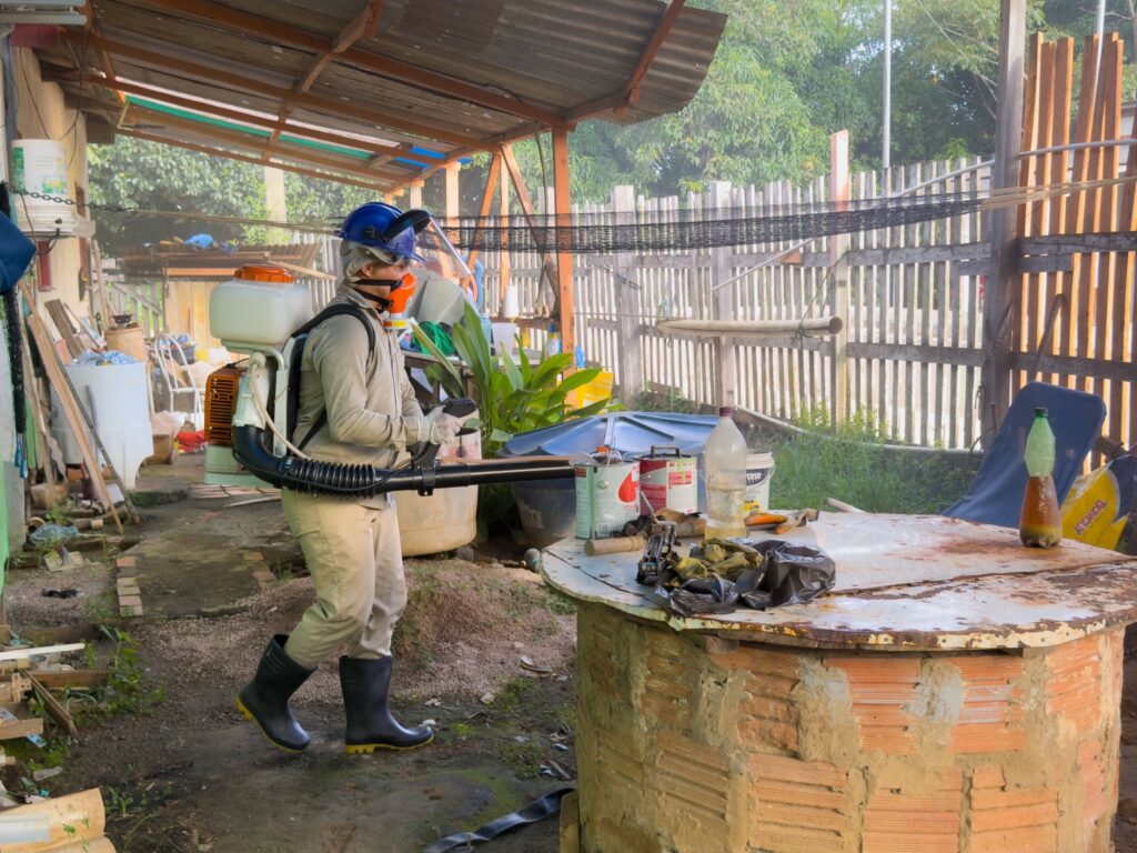 A ação de bloqueio consiste na aplicação localizada de inseticida com o uso de bomba costal, estratégia que reforça o combate direto ao mosquito transmissor da dengue e atua de forma preventiva na eliminação de possíveis focos. O trabalho é direcionado especialmente a áreas com maior risco, garantindo uma resposta rápida e eficaz para conter a proliferação do vetor.